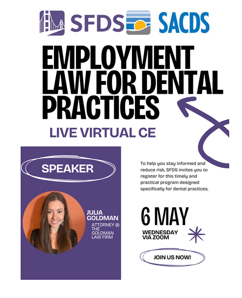 (Via Zoom) EMPLOYMENT LAW TUNE‑UP FOR DENTAL PRACTICES May 6, 2026 6PM